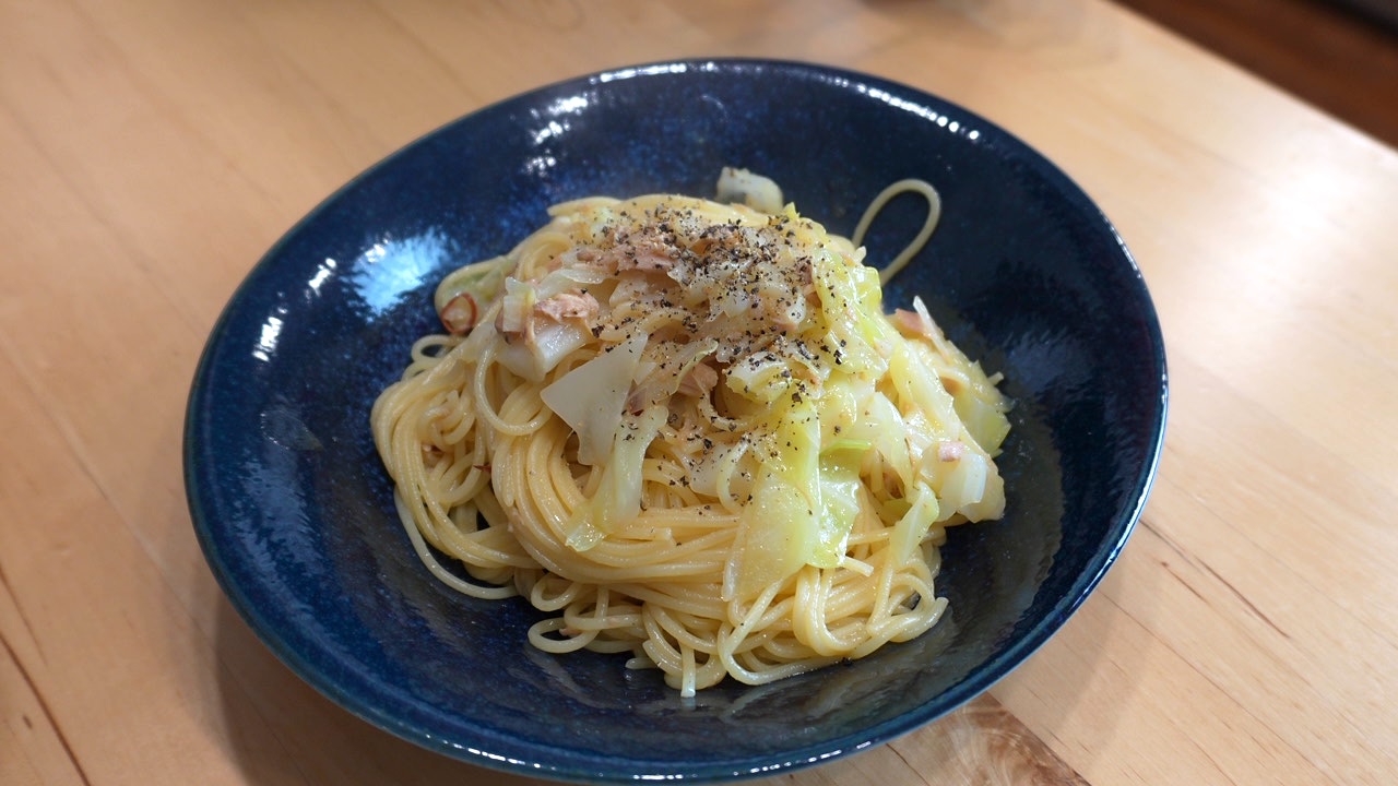 パスタツナキャベツの和風ペペロンチーノ ワンパンで時短!和風ツナとキャベツのペペロンチーノ(2人前)フライパンひとつで簡単調理!ツナの旨み&キャベツの甘みがしっかり染みた、さっぱり×コクうまな和風ペペロンチーノ🍝✨強火で水分を飛ばす仕上げで、ソースがしっかり絡む!時短・節約レシピ...パスタ
